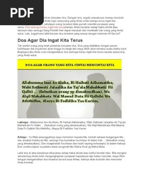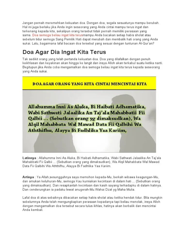 Doa agar orang yang kita cintai mencintai kita kembali islam itu indah. "allahumma inni as aluka, bi haibati adhamatika, wabi sathwati jalaalika an taj'ala mahabbatii fii qalbii … (sebutkan orang yang dimaksudkan), .